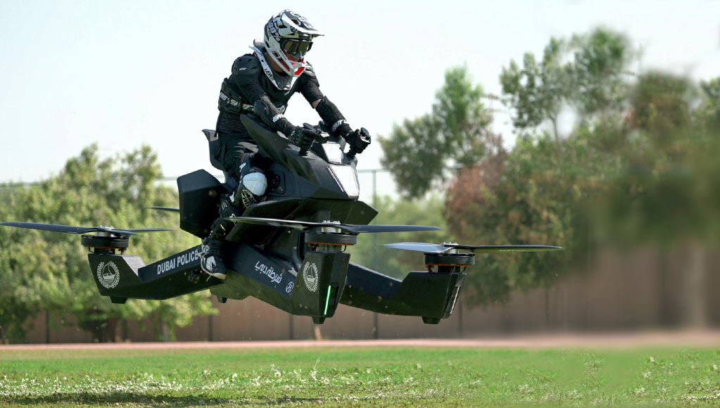 Recientemente, la compañía Hoversurf comenzó el entrenamiento de agentes policiacos de Dubai para el uso de la “Hoverbike”, una especie de motocicleta voladora que servirá para patrullar las calles de la ciudad de Medio Oriente.